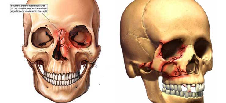Injury mechanisms such as falls, assaults, sports injuries, and vehicle crashes are common causes of facial trauma in children as well as adults.are a common cause of facial injury.Facial trauma can also result from wartime injuries such as gunshots and blasts. Animal attacks and work-related injuries such as industrial accidents are other causes.
